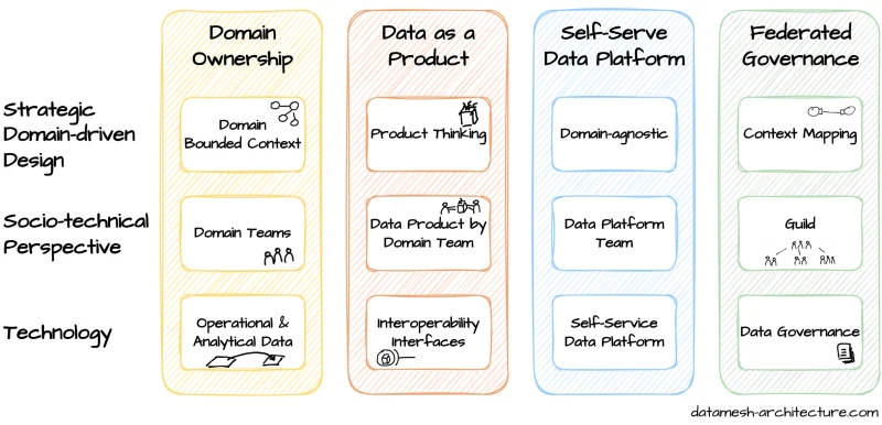The decentralized strategy of data mesh distributes data ownership to domain-specific teams that manage, own, and serve the data as a product