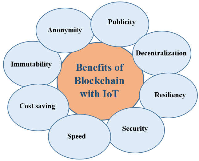 The introduction of Blockchain technology has resulted in numerous benefits across a wide range of industries in trustless environments. several advantages and goals of Blockchain in IoT are discussed below: